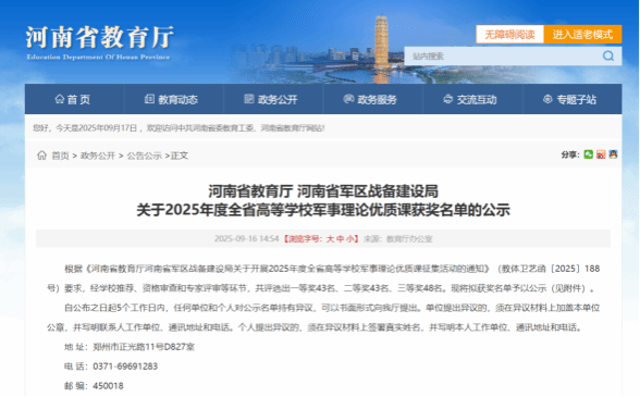 近日,河南省教育厅公布2025年度全省高等学校军事理论优质课获奖名单,我校选送袁进展老师的《信息化装备和信息化作战平台(一)》、李晓梅老师的《国防法的“新”与“心”》两个课程凭借鲜明的时代特色、创新的教学模式和深刻的育人价值,各自荣获省级二等奖。