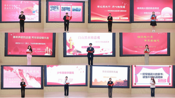 本次活动自启动以来,始终以“学史明理、学史增信、学史崇德、学史力行”为指导思想,由教务处与马克思主义学院联合策划、共同推进。活动前期,全校学生围绕抗战主题深入挖掘历史素材,严格按照要求完成讲述稿撰写与PPT制作。活动组委会则有序开展工作,通过初赛作品收集与初评、半决赛院内展示等环节层层筛选,最终从众多作品中选出11组优秀学生作品,进入决赛现场展示环节。