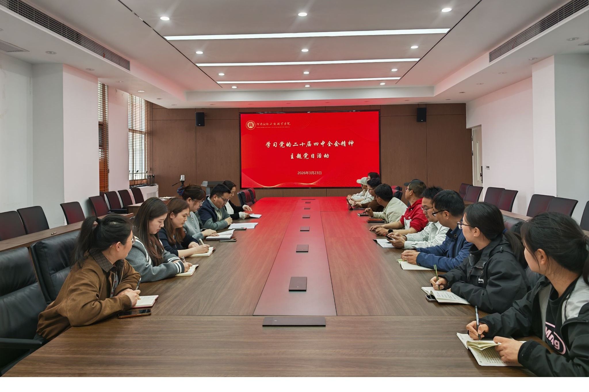 为深入学习贯彻党的二十届四中全会精神,切实把全体党员干部的思想和行动统一到党中央决策部署上来,以全会精神引领各项工作高质量发展,近日,河南新乡工商职业学院马克思主义学院党支部组织全体党员开展“学习贯彻党的二十届四中全会精神 踔厉奋发新征程”主题党日活动。活动通过专题学习、交流研讨、重温誓词等多种形式,推动全会精神入脑入心、落地生根。